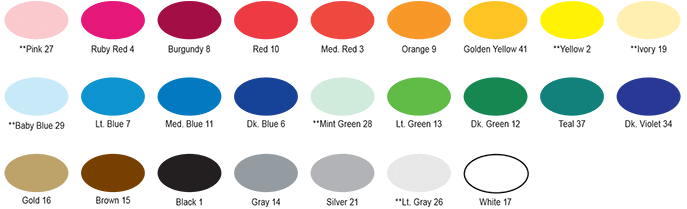 ** These light colors are ideal for background colors, but may not be appropriate for type. Colors shown are not exact color matches